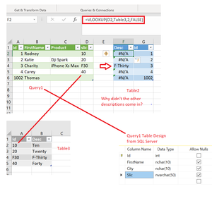 After I refresh my database Query 1 table, I try to lookup the slic column in Table2 to get the description in Table3. However, Only one of the descriptions is coming back. Any ideas? To be more exac...