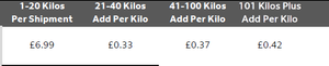 Which formula can I use in excel to work out the cost of a shipment from this data I want be able to type in total kilos in one cell and the answer would be for example £14.70 based on ...