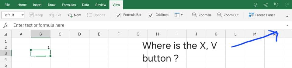 If possible, make the X, V button fixed when you type & move to a new cell? Like the iOS version of excel.