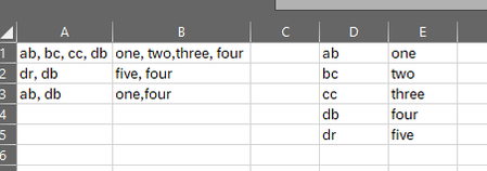 =TEXTJOIN(",",,FILTER($E$1:$E$5,ISNUMBER(SEARCH($D$1:$D$5,A1))))