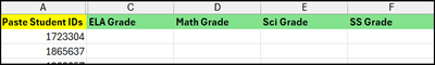 I have a tab that I am trying to pull all student grades to based on the data dropped into another tab.