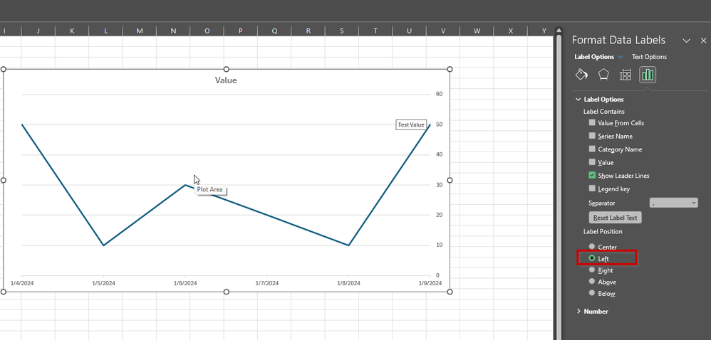 I would like to know if it is possible to position a datalabel between the last data point and the Y Axis.