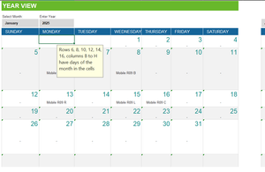 Anyone able to assist with a yearly view for a dynamic calendar? I have a month view which pulls dates associated with a deployment from a table (I got this template from someone in the excel communi...