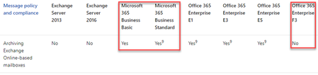 I'm looking for clarification about exactly which licenses / subscriptions include Exchange Online Archiving, and which subscriptions require an add-on license for Archiving. The https://docs.mic...