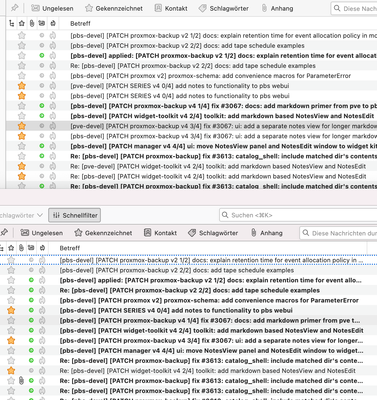 the problematic folder has mails from two differnt, but related mailing lists, where developers send emails to both sometimes - and these have been "deduplicated".