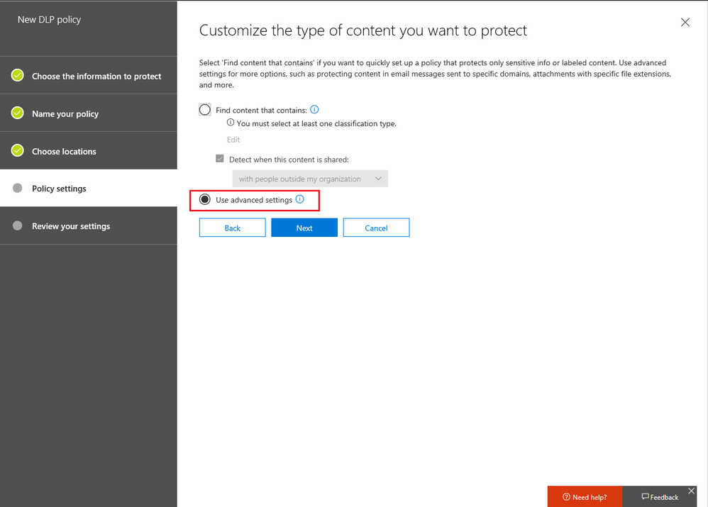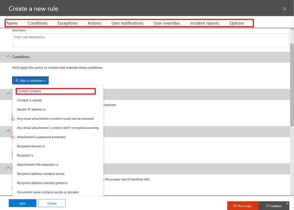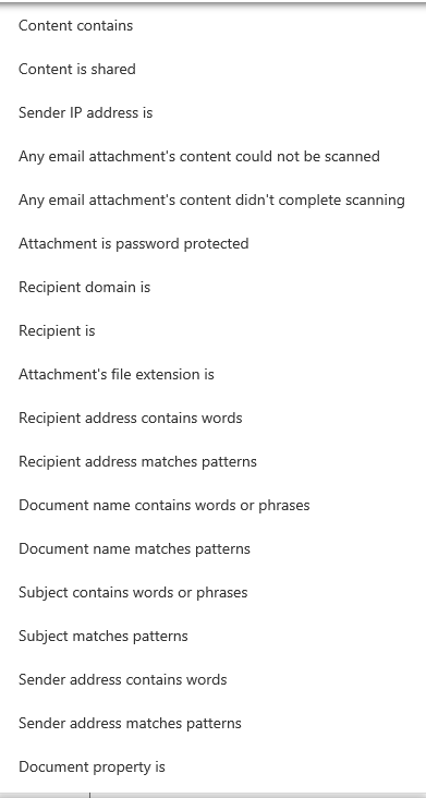 below are some of the conditions that can be set for your DLP policy: