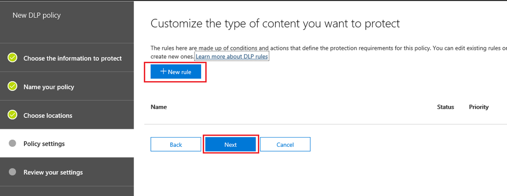 - Click on Data loss Prevention, Policy and then Create a Policy. Provide name description and click next