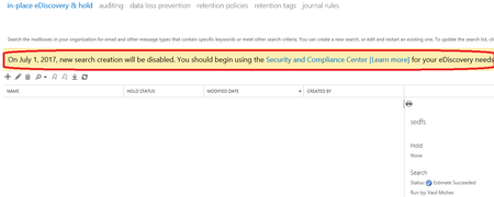 eDiscovery controls to be removed from the EAC July 1st