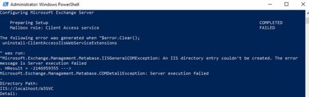 Hi teams, i have an error when i rty to uninstall exchange server : in role CAS at 70% Mailbox role: Client Access service FAILED: the iis admin service not start , and i delete all folder (o...