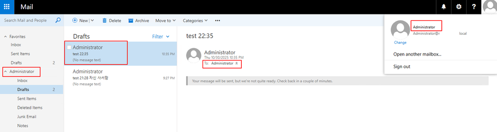 Help~After installing Exchange 2019, mail is stuck in Draft in OWA