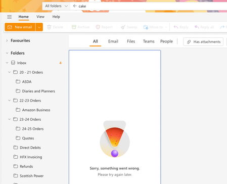 Issue when searching in Outlook web - Something went wrong