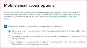 This is one of those, "I'm not sure which community this belongs in". When configuring Mobile Email Access option (Admin Center-->Settings-->Services & add-ins-->Mobile email access options) to r...