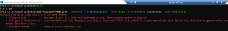 When I tried to set exchange on-premise user mailbox permission, I'm getting the below error. I have used the below script. What we missed ? This works for some objects. $sid = "S-1-5-1...
