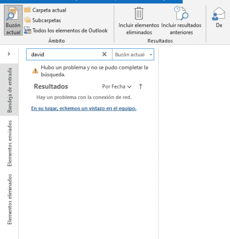 Pero en un outlook cliente 2019 cuando intentas hacer una busqueda, primero, parece que lo intente buscar en exchange server. ¡¡¡por algun motivo no puede!! ¿porque? ¿que tipo de comando le debe estar enviando al servidor para que no le de respuesta?