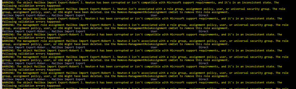 I have taken on a exchange server system, in DAG, and removed the old manager from AD and all the rest, but I get an error when Get-ManagementRoleAssignment Mailbox* that still shows the old manager. How do I get rid of it?