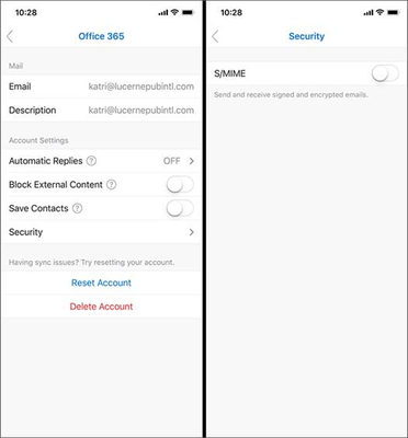 Hello, I'm trying to figure out if the S/MIME-certificate-functionality in the Outlook app only applies to Office 365 or to Exchange on-premise as well (no hybrid). I don't see the option to enable S/MIME in the app for my Exchange account: