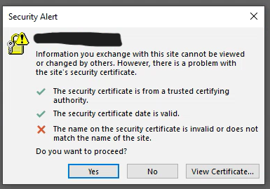 "The name on the security certificate is invalid..." After changing to trusted CA and updating VDs