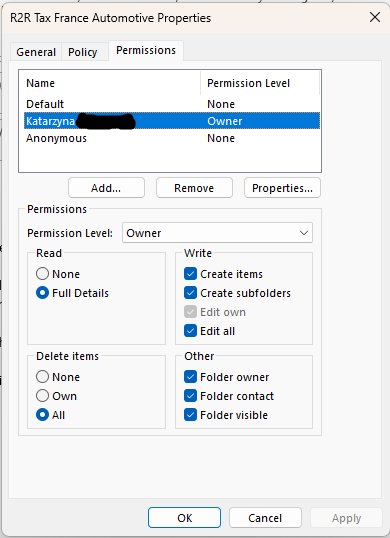 I have a user that cannot rename categories in a mailbox whilst being the owner.