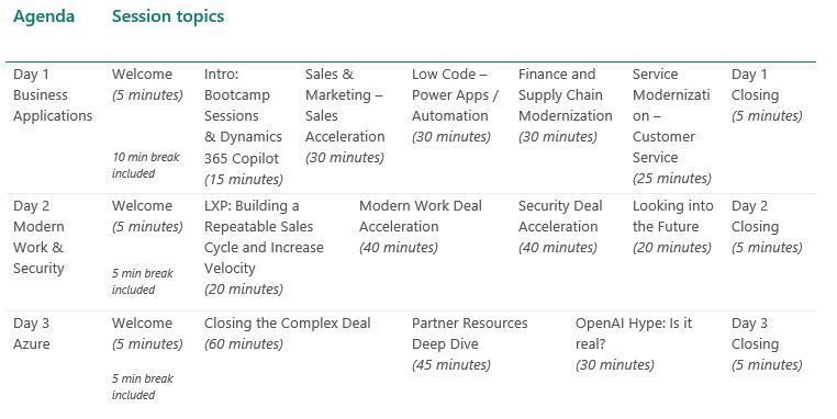 Este bootcamp será oferecido em 3 fusos horários e liderado pelos melhores vendedores e peritos da Microsoft.