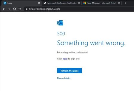500 error trying to access Outlook
