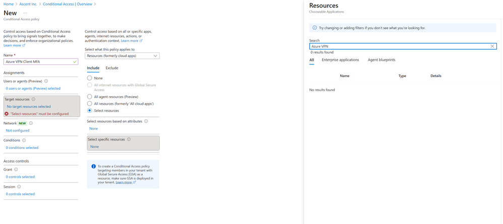 Both articles explain the difference between Microsoft-Registered and manually registered apps. My question is still about how do I target the Microsoft-Registered app in a conditional access policy? When I attempt to create a policy, I can't find Azure VPN Client resource as an option. If I enter "Azure VPN" to search in All Apps, no results.