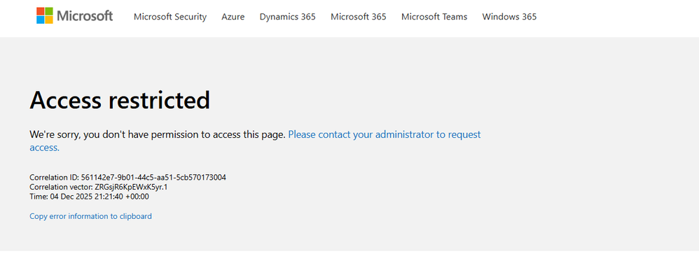 Access Restricted Error On Partner Center Dashboard