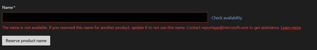 App name blocked on Marketplace submission