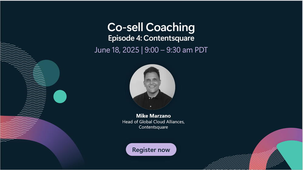 Announcing the next episode in Co-sell Coaching, featuring Mike Marzano, Head of Global Cloud Alliances at Contentsquare. Join us on June 18th for this new marketplace community event series, where Microsoft partners walk their peers through best practices on how to co-sell effectively through the marketplace, and host a live Q&A along with Microsoft co-sell subject-matter experts.