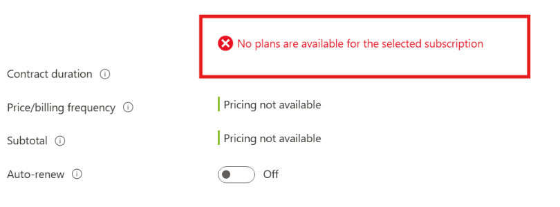 No plans are available for the selected subscription