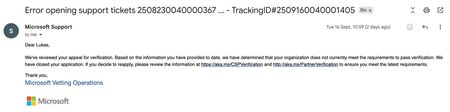 Hello, We are looking to become a verified partner, but are unable to do so due to this error in communicating with the support team. I have tried creating multiple tickets, but after it is c...