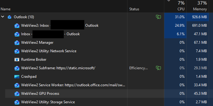 I have a 12 Gen i7 210Mhz 12 core processor with 64Gig RAM and RTX 4070Ti GPU and all solid state drives. Outlook email feels like I'm using a remote desktop on the other side of the world kind of lag, stuttering. Deleting emails is an exercise in patience, it gets confused about read and unread, it generally feels like its just barely holding on.