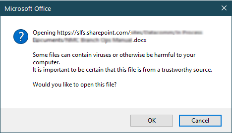 Now, when I click on the link in my doc, I get the following warning. After I click OK, first the bookmarked doc opens, then it jumps to the bookmark:Yay!