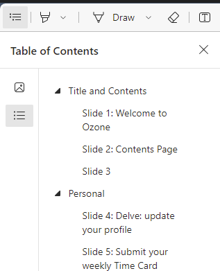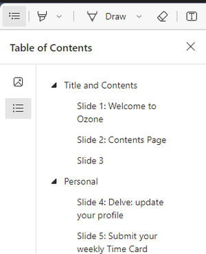 Hello all, I have a PowerPoint deck that I have exported to PDF. When it's opened using Microsoft Edge I want it to show a Table of Contents like below, with the slide headings not the generic Sl...
