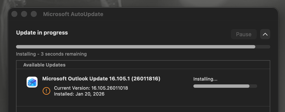 Cannot update M365-Mac to 16.105.1?