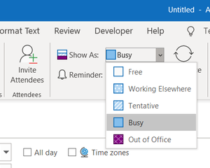 Hi, We are using Office 365 Pro Plus. We would like to add a custom status in the "Show As" for the Calendar schedule. Is this possible? Any workaround to this org-wide?