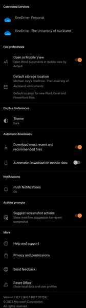 Dark mode on android office app works on phone but not tablet?