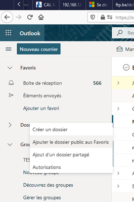 J'ai tenté de mettre les dossier public en favoris sur mon client Outlook mais je ne le vois pas après lorsque je me connecte sur le net.