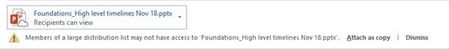 Your best best when using distribution groups etc. Is to use the Anyone can view option instead if it's available as this is a single link. Otherwise you will be dealing with a bunch of people having to login etc. And it probably is stating that it might not be able to send to all the included objects in a large distribution group. Could be a limit too but not sure, how large is the group? Doing anyone view is quick and easy fix here assuming the file isn't sensitive and your tenant allows it.