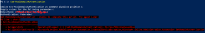 I've successfully added and verified new domain in Active Directory. My plan is to setup that as IdP SSO url. When try to execute Set-MsolDomainAuthentication , i got this error "Unable to complete this action. Try again later". Already try few ways to configure using Microsoft Online Service PowerShell and Azure AD module but still no success.