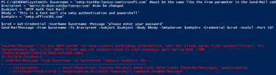 - send a test mail via SMTP with PowerShell