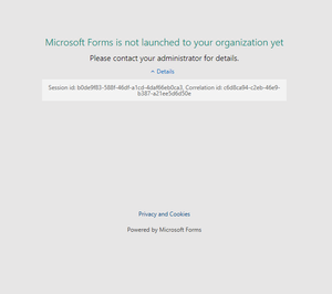 Microsoft Forms has shown up in our tenant, on by default for everyone in the Org. Thanks for the notifications MS! Of course it does not work, like every new product you have launched recently... ...