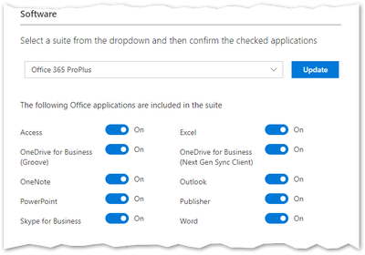 <Configuration> <Add OfficeClientEdition="32" Channel="Monthly"> <Product ID="O365ProPlusRetail"> <Language ID="en-us" /> </Product> </Add> <Property Name="SharedComputerLicensing" Value="0" /> <Property Name="PinIconsToTaskbar" Value="TRUE" /> <Updates Channel="Monthly" Enabled="TRUE" /> <Display Level="None" AcceptEULA="TRUE" /> </Configuration>