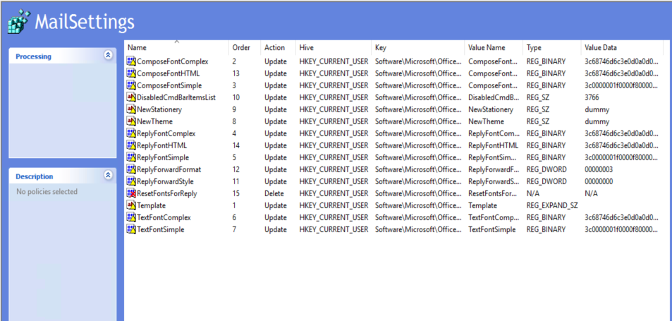 Once you have converted all the .reg files to .xml and imported to the different collections - each Outlook version - you might not see the settings down level initially.