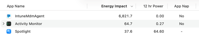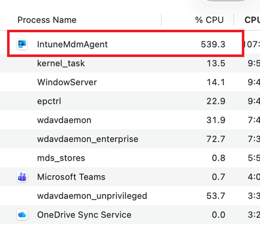 Hi, I have a macOS with the Tahoe version and I noticed that my battery would drain rapidly. When I go check, I noticed that Intune is consuming over 500% of the CPU.