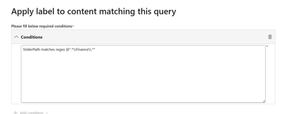 So I Created a "auto apply label" and selected this retention label "indefinite" to it. I am having trouble writing the CONDITION which actually looks for folder named "Finance". Can you help me with that?