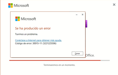 El Office 365 no me deja instalar y me genera este mensaje: