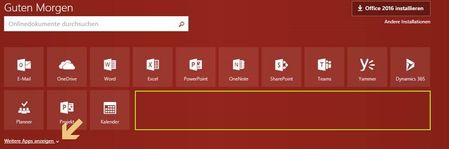 What does that highlight text say by the way? Something like click here to see more apps? Are missing items like People, Tasks, and Delve shown afterwards?