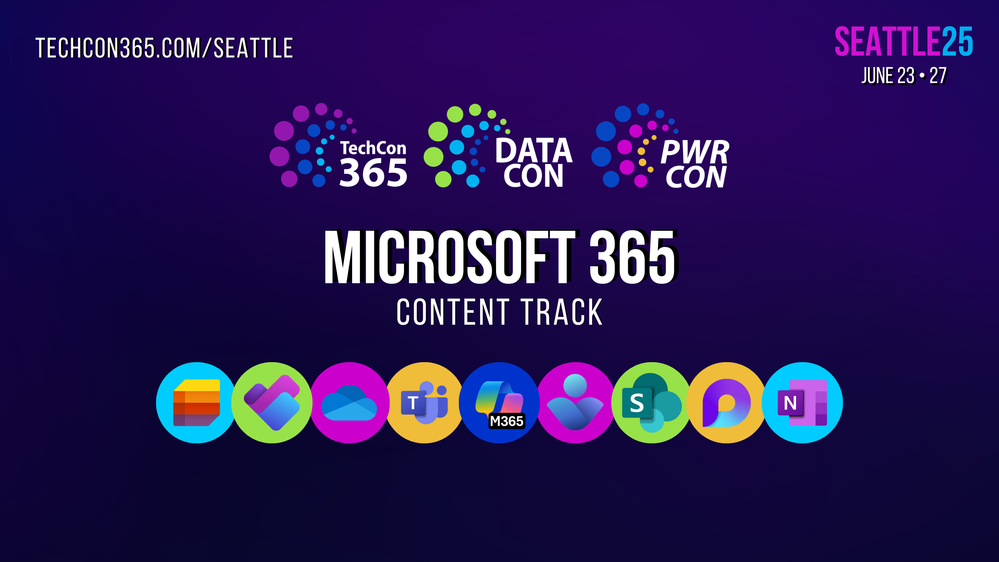 Want to find out what's new in Microsoft 365 or you are new to Microsoft 365? Whatever your reason, check out TechCon 365 coming to Seattle June 23-27, 2025. For the complete list of Sessions and Workshops related to Microsoft 365, check out the link at https://www.techcon365.com/Seattle/component/content/article/588-m365-apps-2025?catid=41&Itemid=199