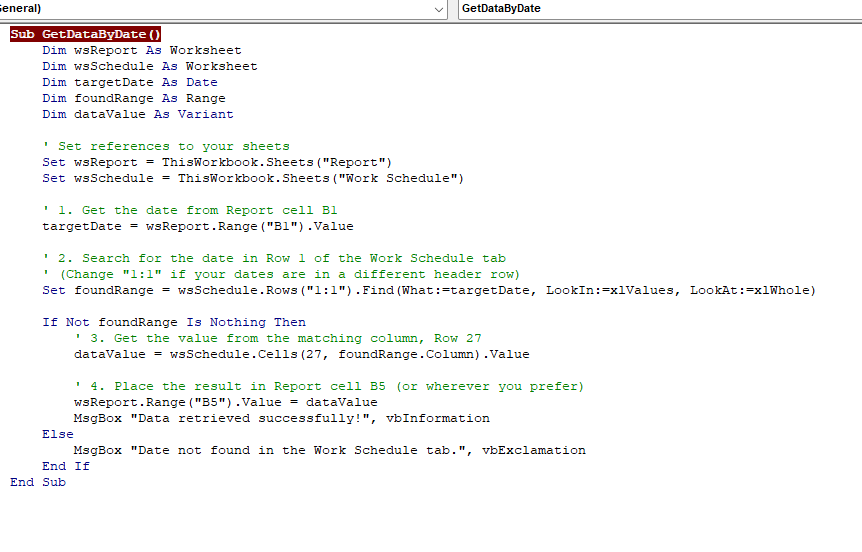 I have a workbook with several tabs and then a report tab at the end. I want to identify the search criteria at in one cell and then go search in another tab in a certain row. When it finds the match it should then go down the associated column a specific number of cells and copy the contents of that cell. Then it should go back to the reports tab and paste it in a specified location.