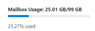 Hi All, I have a outlook user who is getting message that mail box is full, but when I check on Microsoft online(EAC) it says it is using only 25 GB out of 99 GB , screenshot below. User out look...